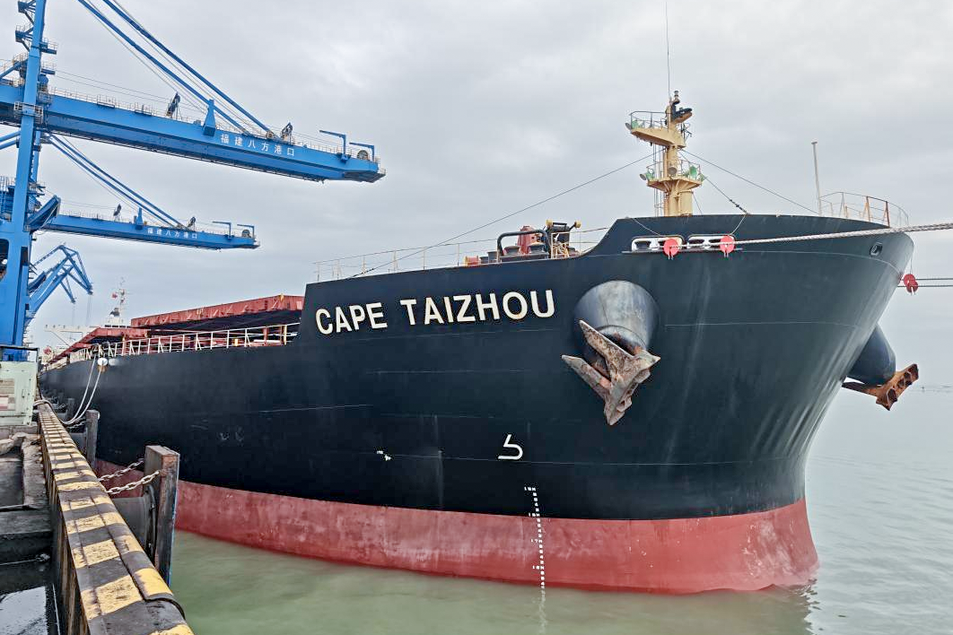 “MV CAPE TAIZHOU”号货轮载运13.3万吨澳洲动力煤靠泊福建莆田八方码头