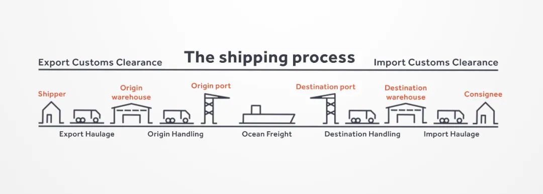 国际海运步骤:出口运输、出口清关、原产地处理、海运、进口清关……