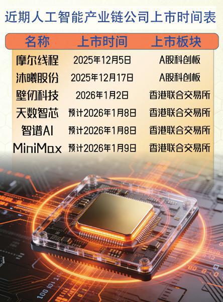 在芯片侧,天数智芯将于1月8日在港交所挂牌,昆仑芯等更多玩家则箭在弦上,一场密集的IPO浪潮已然形成。