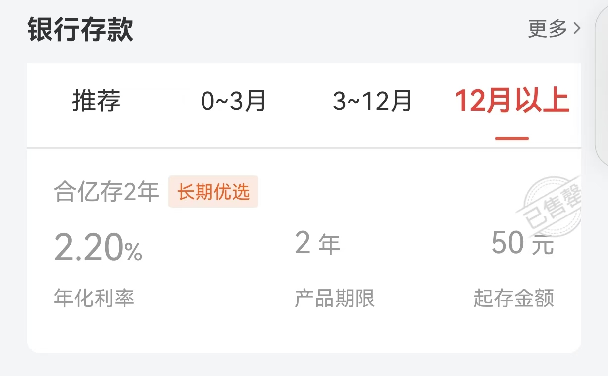 亿联银行APP显示,2年期及以上期限存款已售罄。