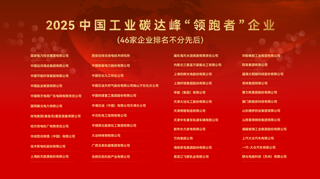 近日,中国工业经济联合会在第四届中国工业碳达峰论坛上正式发布2025年度中国工业碳达峰“领跑者”企业名单,全国共有46家企业成功入选。