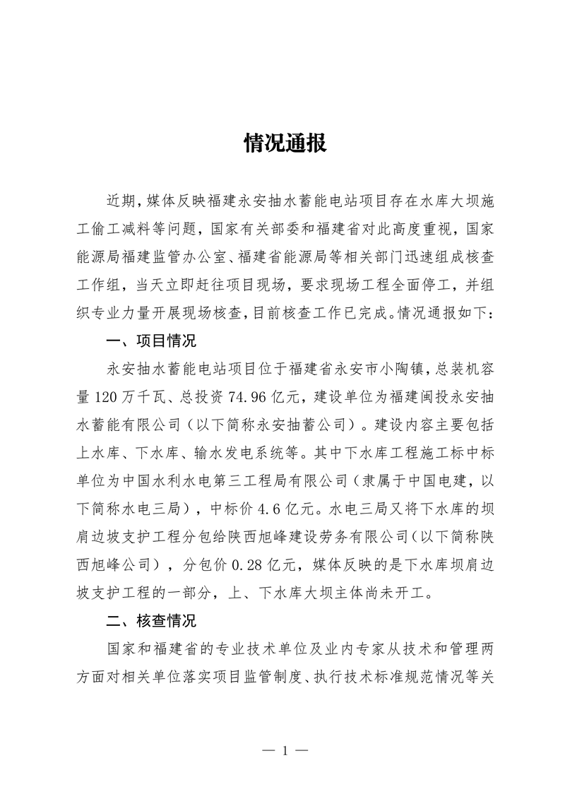 福建永安抽水蓄能电站施工被指偷工减料,官方通报