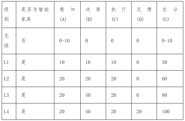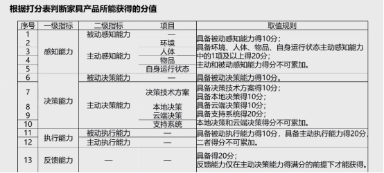 核心界定:只有达到L1级(总分≥30分)及以上的产品,才可称为“智能家具”。这从根本上杜绝了将普通电动家具宣传为智能家具的市场乱象。