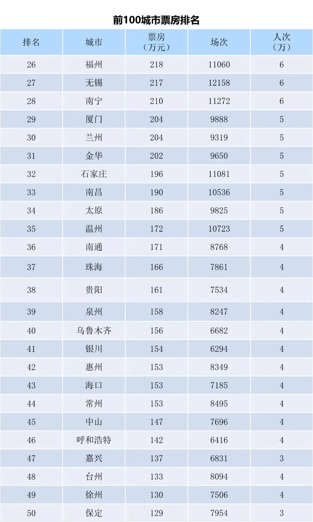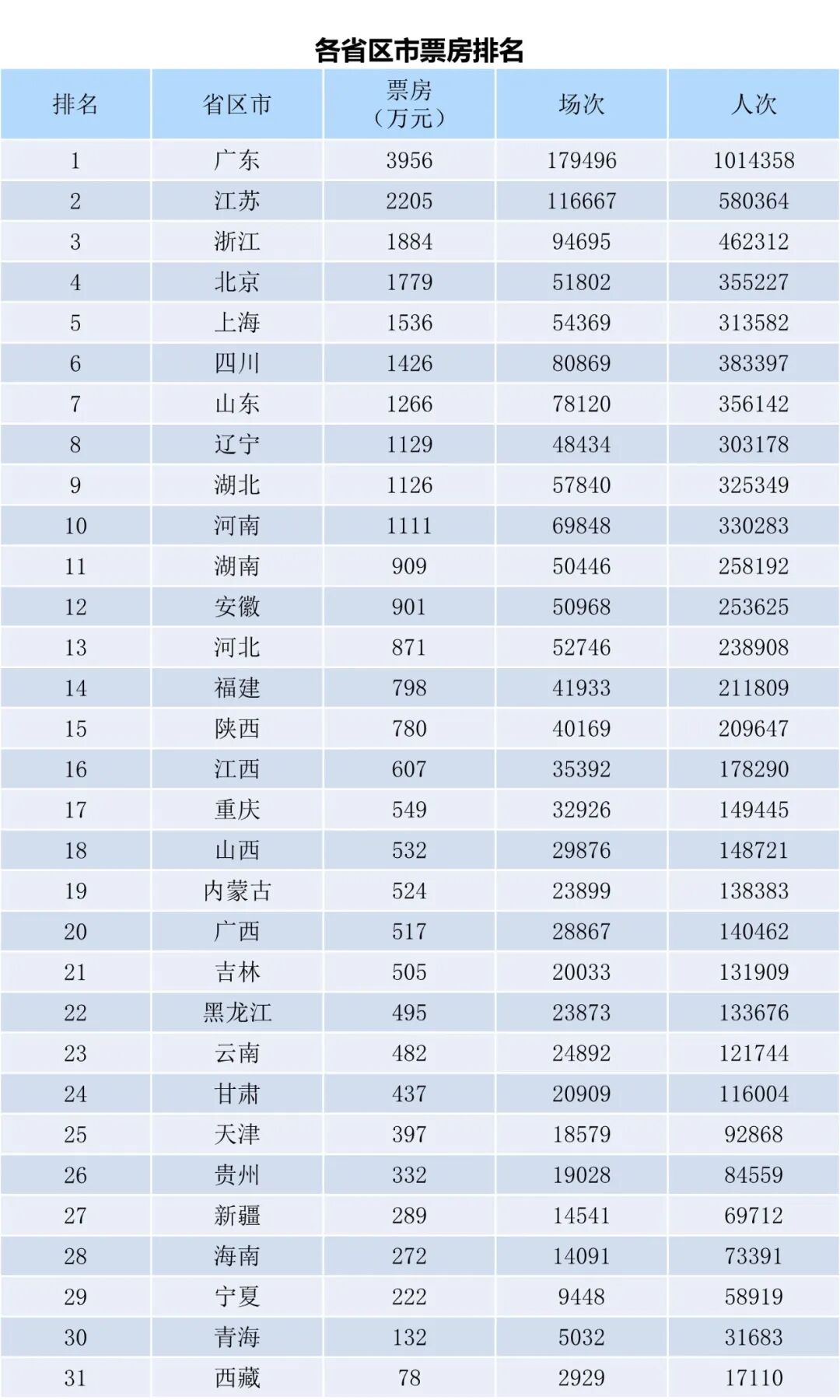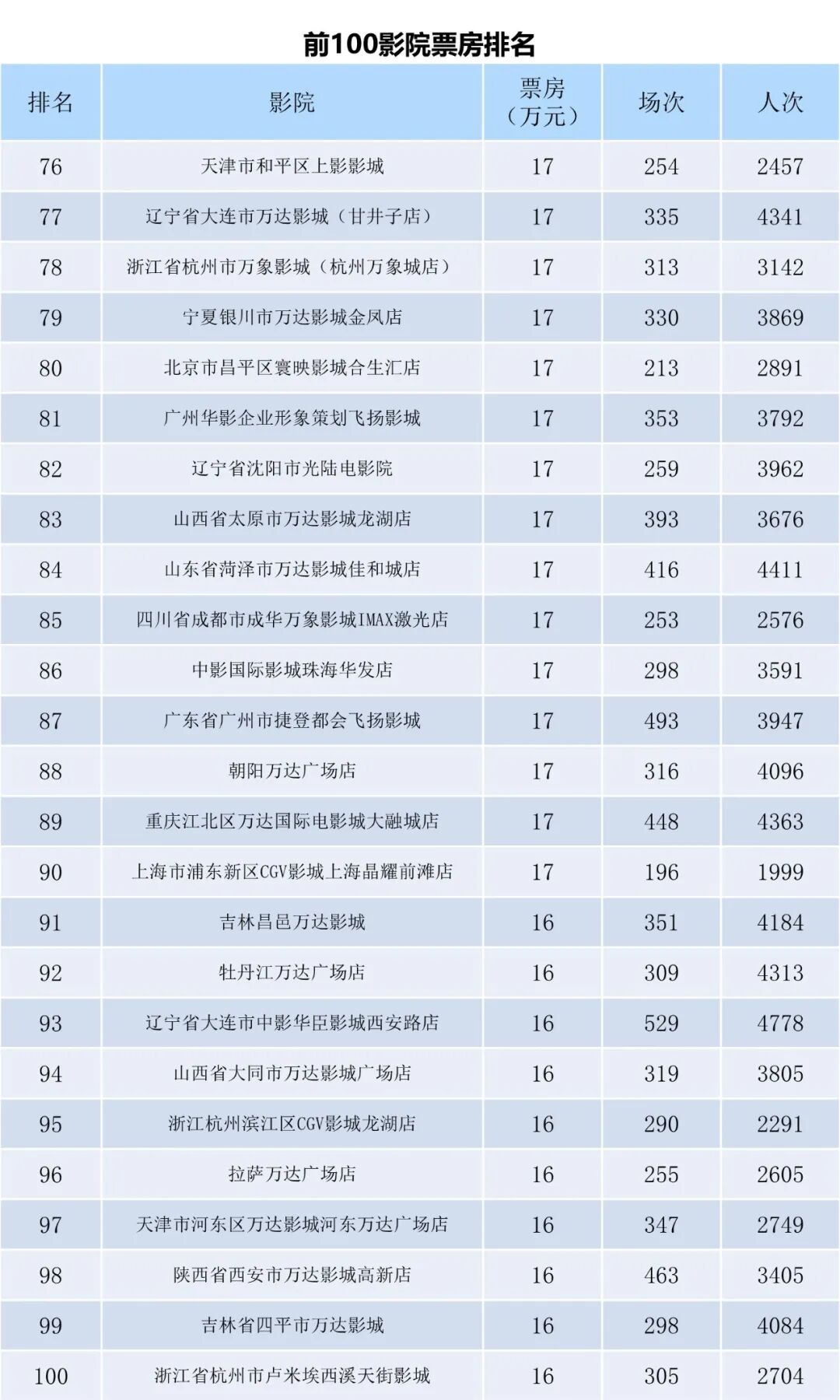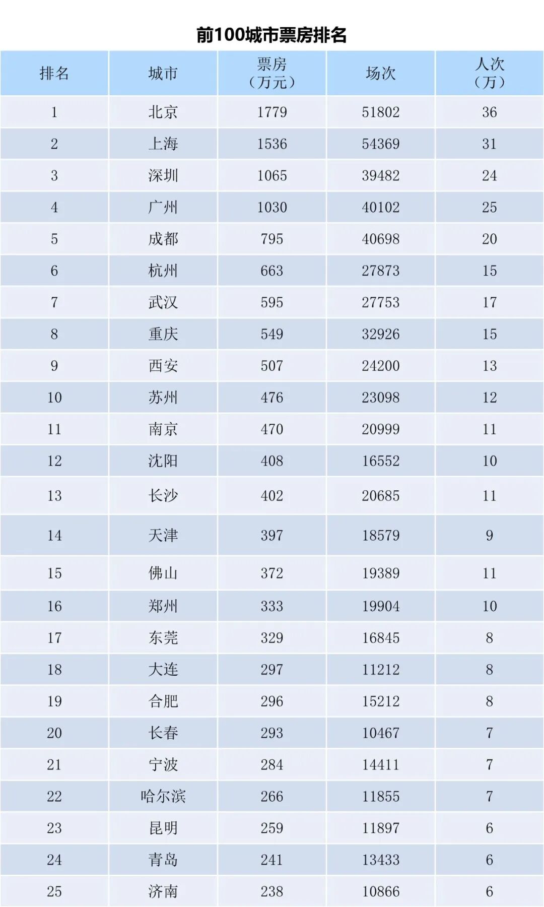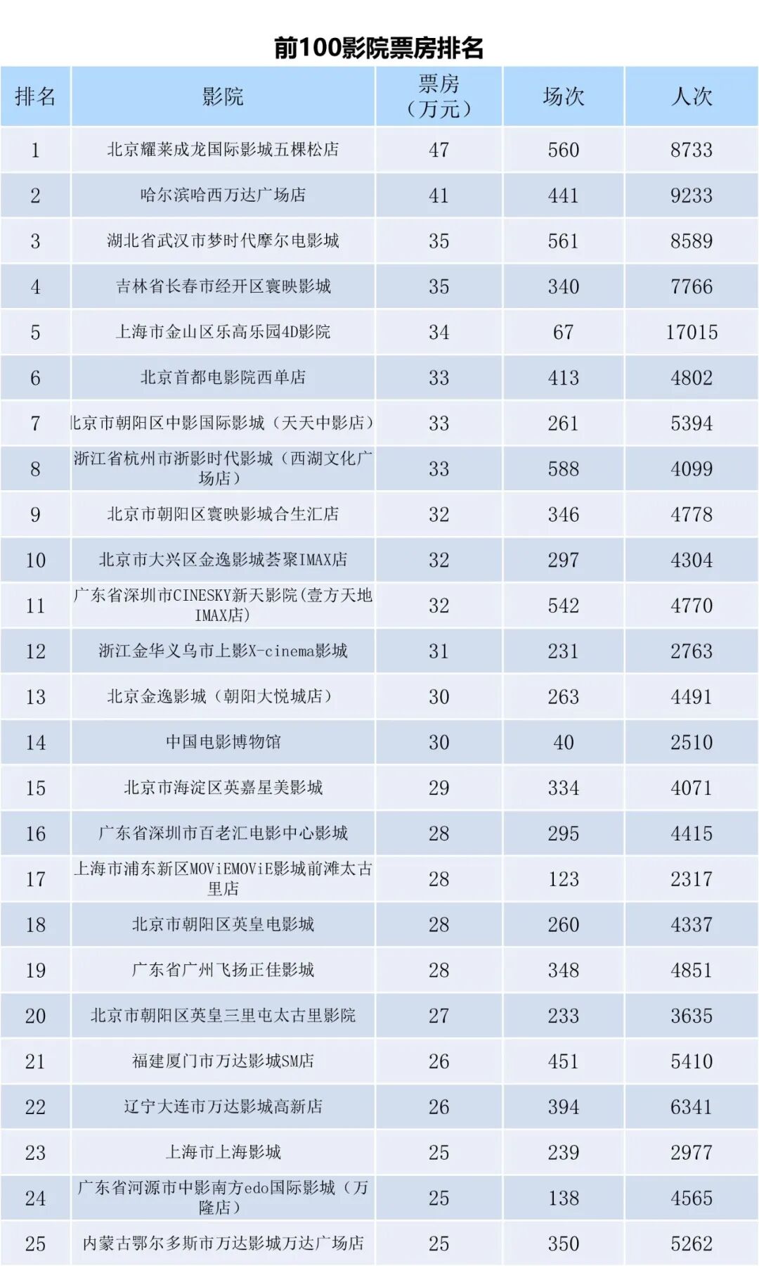 全国电影票房周报