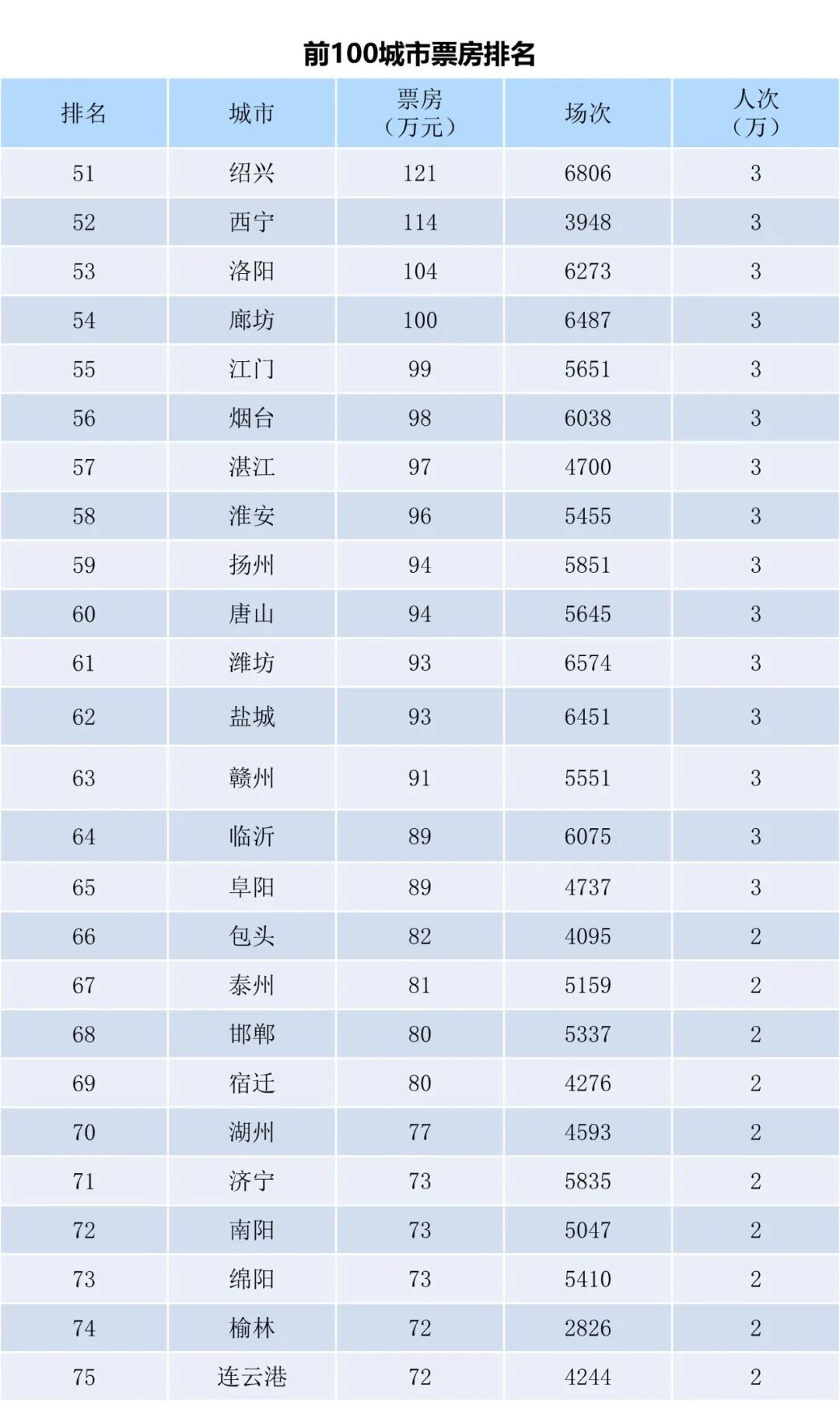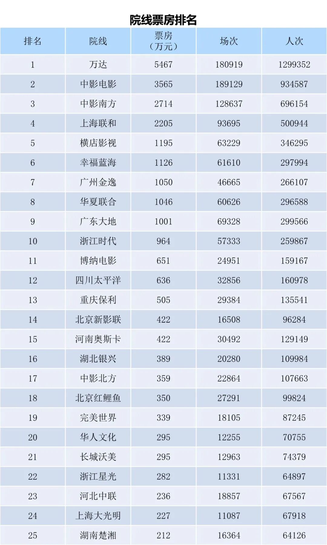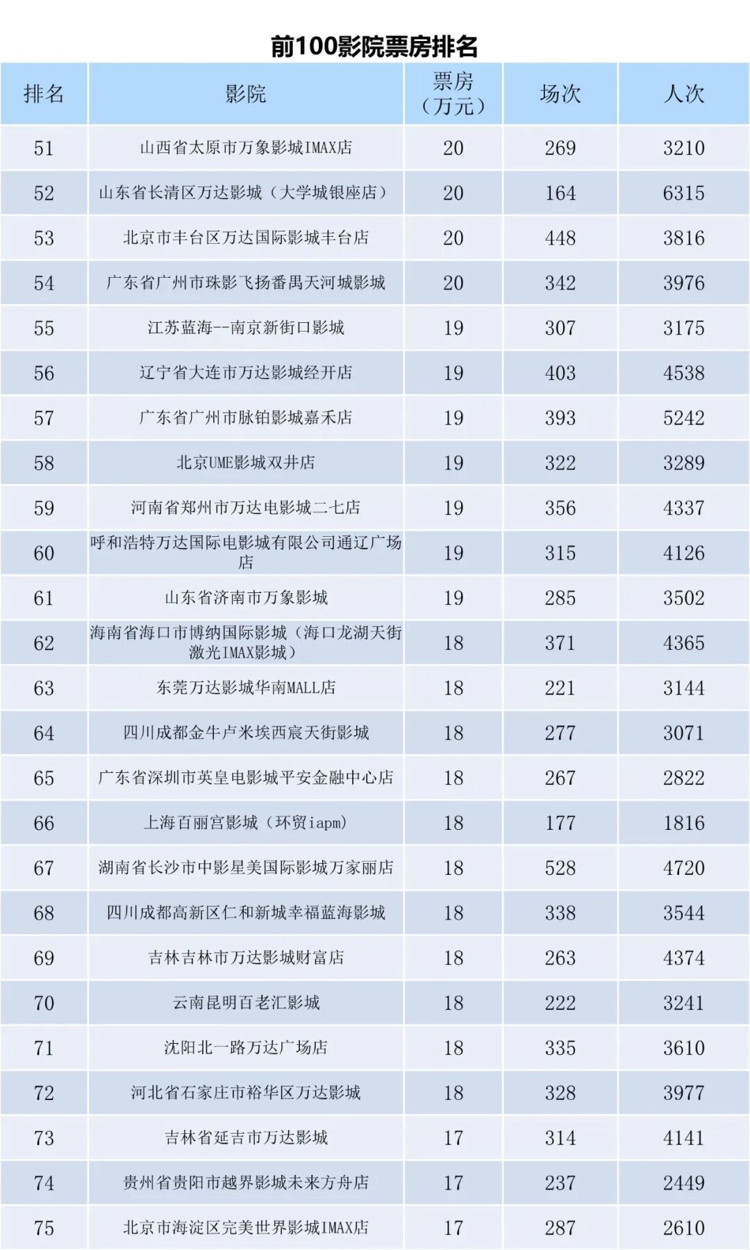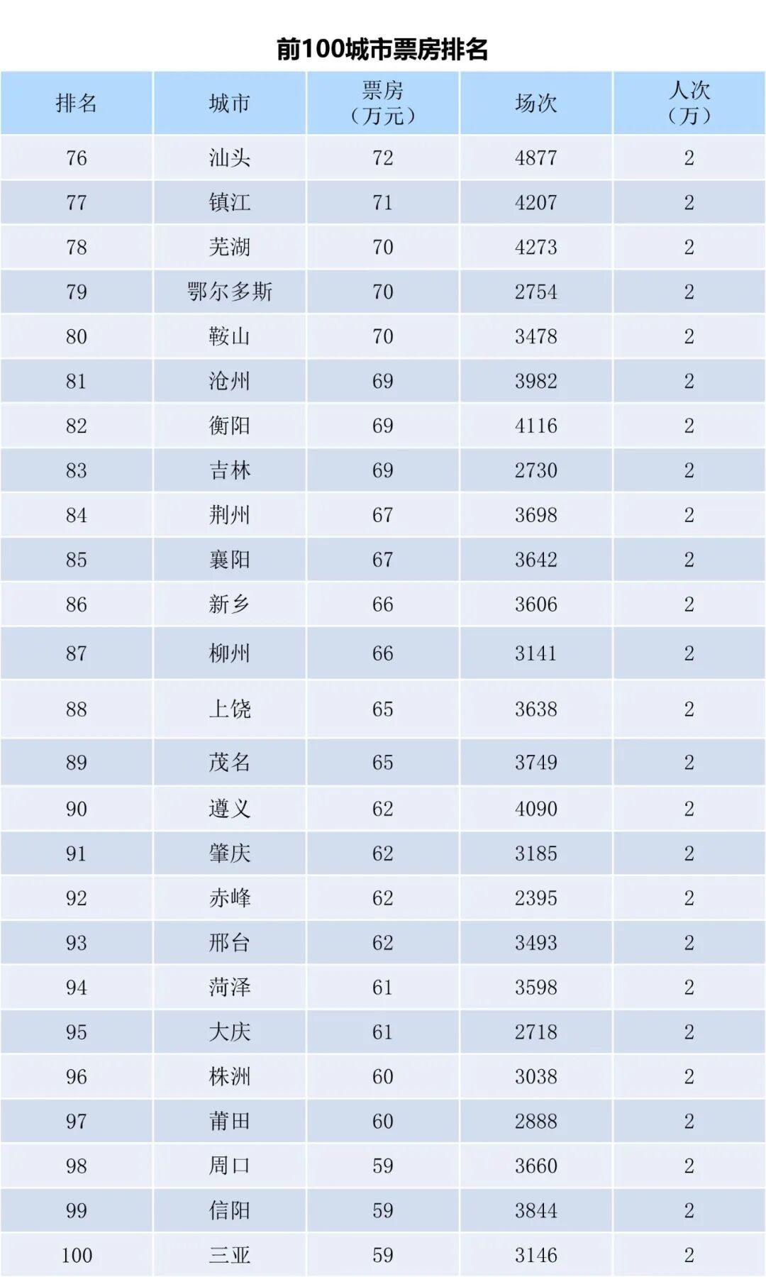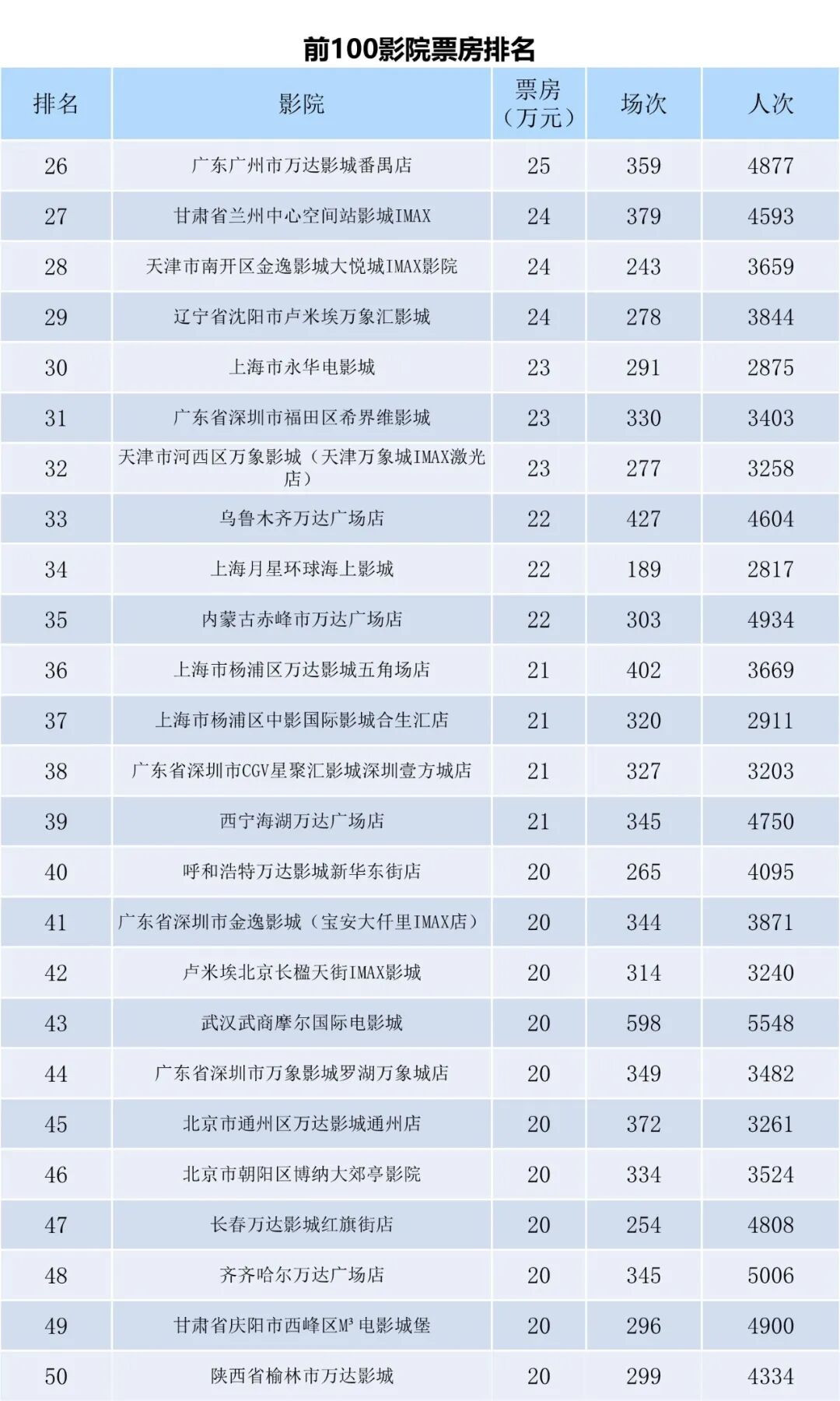 全国电影票房周报