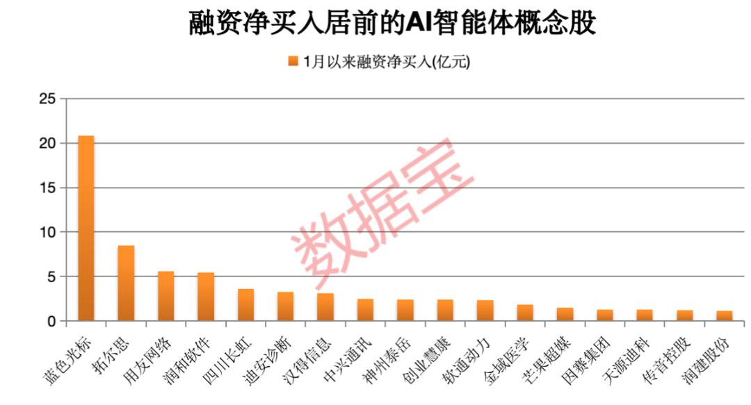 资金流向方面,截至1月19日收盘,上述回撤20%以上的AI智能体概念股中,1月以来获得融资净买入超1亿元的有17只,如蓝色光标(300058)、拓尔思(300229)、用友网络(600588)、润和软件(300339)、四川长虹(600839)等。