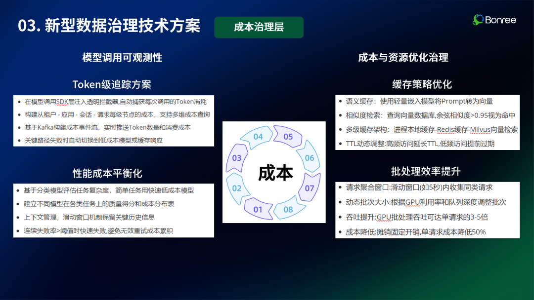 资源优化治理提升投资回报。在多模型混合场景下实现透明的成本归因,最大化相似查询的缓存命中,识别可批量处理的请求,基于业务价值动态分配资源配额,利用峰谷时段成本差异优化调度,量化AI系统的业务价值评估ROI。