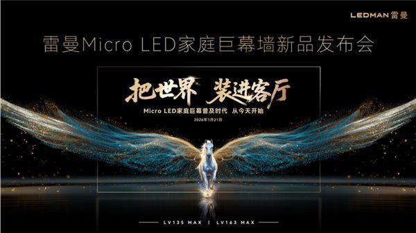 作为A股第一家上市的LED显示高科技公司,雷曼光电(300162)的技术突破为行业破局提供了关键范本。1月21日,雷曼在深圳发布新一代Micro LED家庭巨幕墙,创新打破行业瓶颈。创始人、董事长兼总裁李漫铁先生发布LV135Max(135英寸)与LV163Max(163英寸)两款新品。在国家超高清视频产业政策推动下,雷曼通过关键技术突破和产业链整合,针对性解决成本、耗能、性能、场景等核心障碍。
