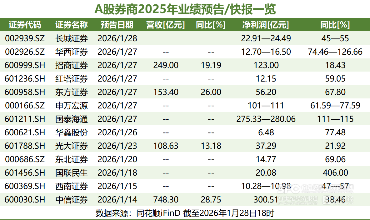正值A股年报预告披露期,一批上市券商密集“交卷”报喜。