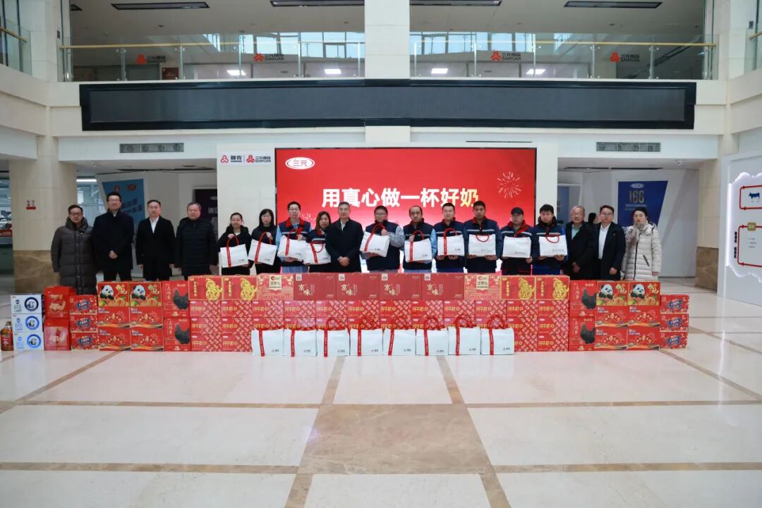 新春佳节将至,年味渐浓。首农食品集团党委副书记、董事、总经理,三元食品董事长袁浩宗一行前往三元食品北京工业园,开展春节前安全生产检查并慰问一线员工,向坚守岗位的一线职工送上关怀与祝福。首农食品集团办公室主任聂徐春,安全环保部部长王玉贵,三元食品党委书记、董事陈一,总经理陈海峰等陪同。