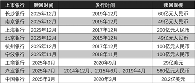 此轮银行优先股赎回潮始于2025年下半年。仅2025年12月就有5家城商行集中赎回,合计赎回规模达458亿元,创下阶段性高峰。其中,上海银行(601229)于2025年12月19日全额赎回200亿元“上银优1”,支付本金及当期股息合计208.04亿元;杭州银行(600926)于2025年12月15日赎回100亿元“杭银优1”,支付本金及当期股息104亿元;长沙银行(601577)、南京银行(601009)、北京银行(601169)分别赎回60亿元、49亿元、49亿元优先股。