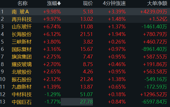 【大河财立方消息】2月25日,玻璃玻纤板块走高,再升科技(603601)涨停,山东玻纤(605006)、国际复材(301526)、长海股份(300196)、北玻股份(002613)等跟涨。