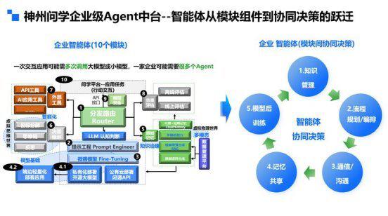 答:神州问学企业级Agent中台不仅提供基础开发能力,还深度整合了数据治理、知识管理、业务流程优化,定位为"AI for Process",能真正将AI融入企业运营流程。