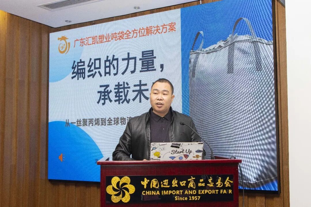 广东汇凯塑业有限公司厂长毋国利带来“吨袋全方位解决方案”,详细介绍了吨袋作为柔性中型散装容器的定义、特性与核心优势。