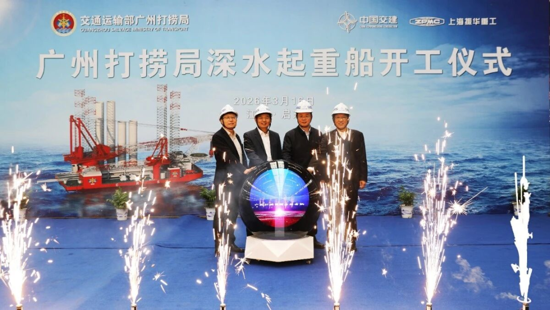 3月16日,上海振华重工(600320)集团为广州打捞局建造的国内桩腿最长、作业最深的插桩式深水起重船在振华海工举行开工仪式。广州打捞局副局长李秀友,中国船级社江苏分社副总经理杭仲九,中国船舶集团第七O八研究所副所长朱建璋,上海振华重工集团副总裁、总工艺师陆汉忠出席仪式。