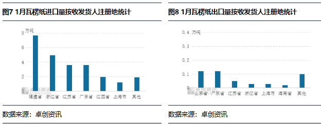 2026年1月瓦楞纸进口量、出口量按收发货人注册地统计