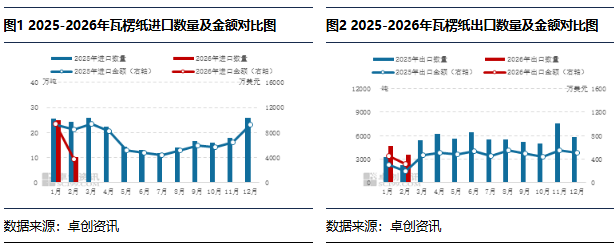 瓦楞纸进口量、出口量环比减少