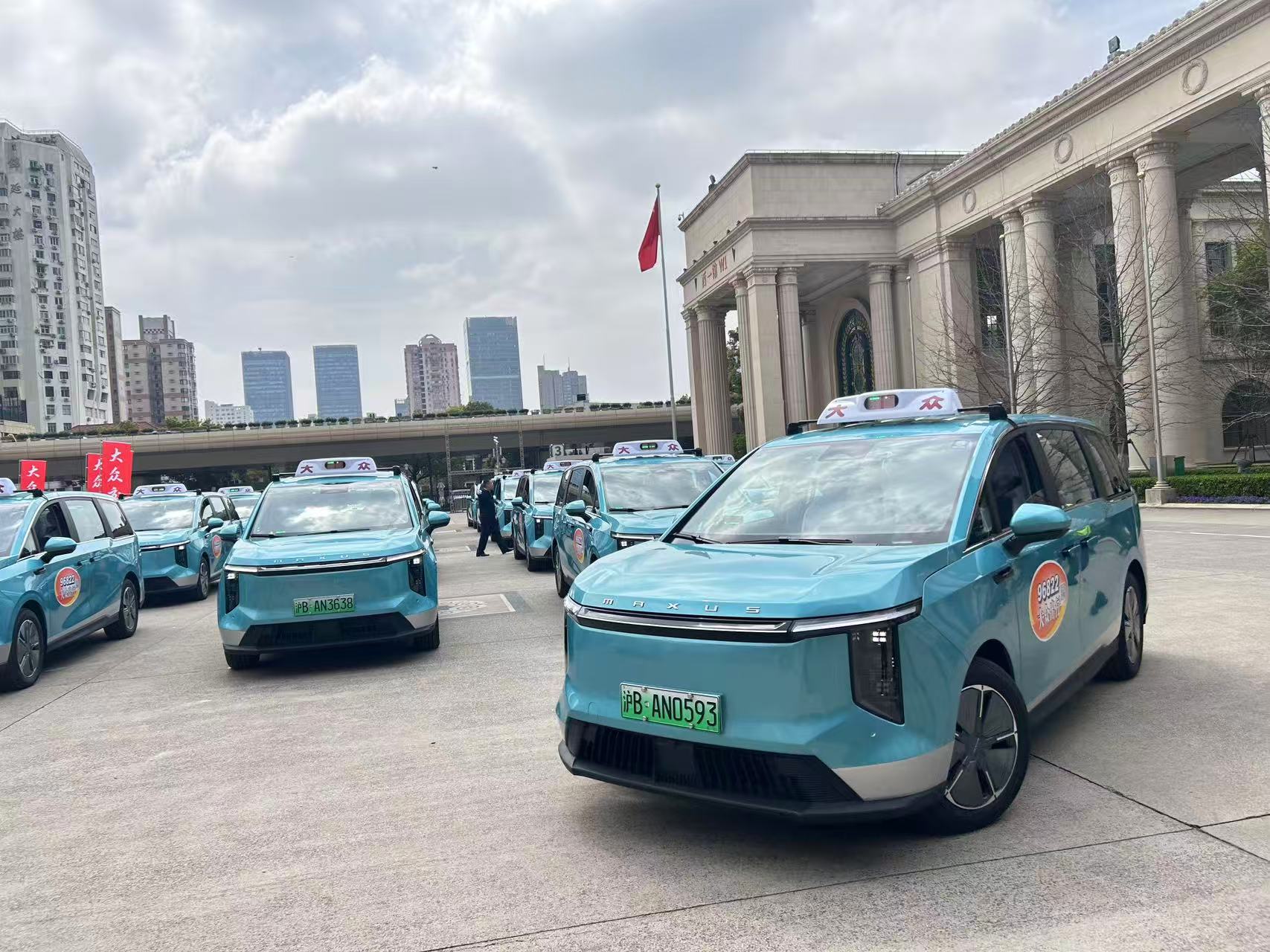 头图为50辆全新六座TF7出租出发。劳动报记者胡玉荣摄影