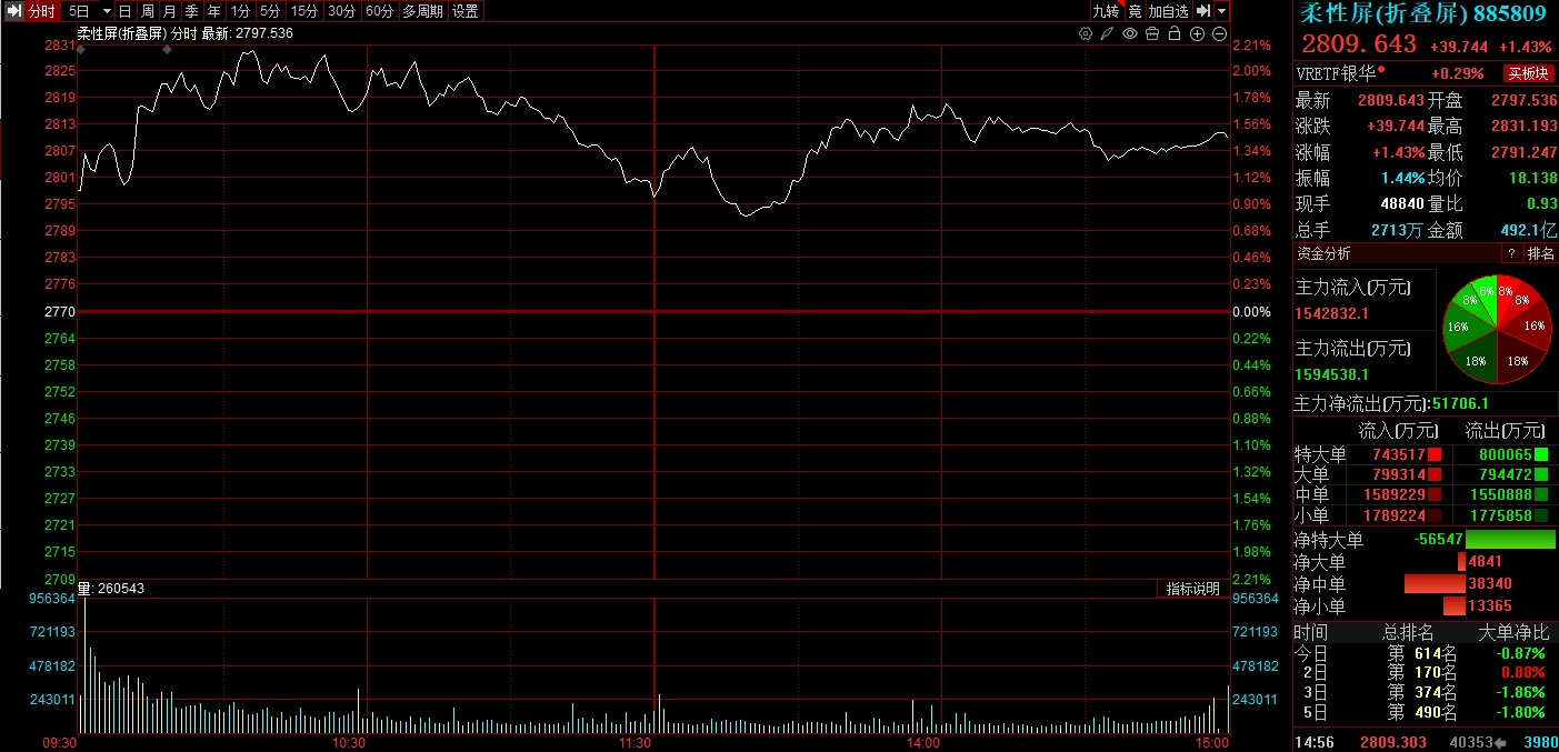 上证报中国证券网讯(记者 邹传科)鉴于苹果(AAPL)折叠屏手机的最新进展,柔性屏(折叠屏)板块再次受到市场关注。4月7日,柔性屏(折叠屏)板块上涨,概念指数收涨1.43%。其中,福蓉科技(603327)一字涨停,全天封死涨停板;大富科技(300134)、联得装备(300545)、精研科技(300709)、宜安科技(300328)等个股跟涨。