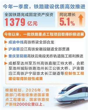 (原标题:时报数说 一季度全国铁路完成固定 资产投资同比增长5.1%)