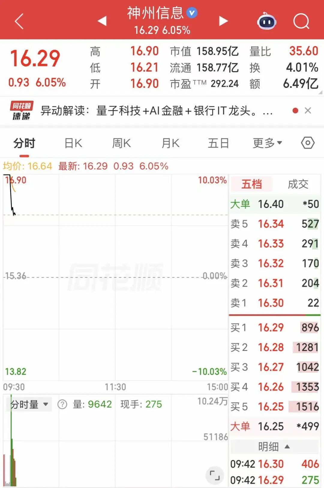 4月15日早盘,量子科技(885730)概念大面积高开,神州信息(000555)(000555)开盘后迅速涨停,随后炸板,截至发稿,涨超6%。中国西电(601179)、国盾量子(688027)、富士达、科大国创(300520)、富吉瑞(688272)、瑞斯康达(603803)等个股涨幅靠前。