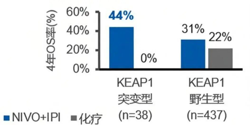 数据显示,在携带KEAP1突变的患者中,O+Y方案的4年OS率高达44%,而同期化疗组则为0%;HR低至0.31,死亡风险降低69%。