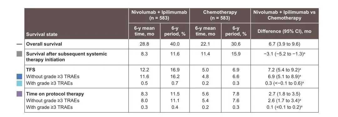在追求延长生存的同时,CheckMate-227研究还重点关注了患者的治疗负担与生活质量。CheckMate-227研究发表于《Journal of Thoracic Oncology》的无治疗生存期(TFS)分析结果显示[2],O+Y组患者TFS长达12.2个月,是化疗组(仅5.0个月)的2倍以上。这意味着接受O+Y方案的患者,在其生存期内有更多的时间处于无需任何抗肿瘤治疗的状态。此外,在接受O+Y治疗后达到5年生存的患者中,高达66%在停药后超过3年未再接受任何后续全身治疗。由此可见,O+Y方案不仅致力于延长生命的长度,也践行了“高质量长期生存”的现代肿瘤治疗理念。