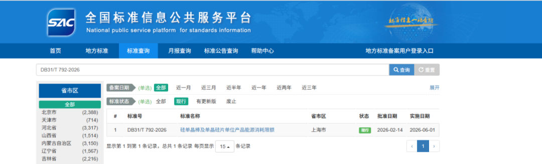 经上海市市场监督管理局批准立项后,协会牵头对地方标准《硅单晶棒及单晶硅片单位产品能源(850101)消耗限额》(DB31/792-2020)进行了修订,2025年12月正式提交报批稿。修订后的《硅单晶棒及单晶硅片单位产品能源(850101)消耗限额》(DB31/T792-2026)已于2026年2月批准发布,将于2026年6月1日起正式实施。该标准由上海市发展和改革委员会、上海市经济和信息化委员会共同提出;由上海市经济和信息化委员会组织实施;上海有色金属(1B0819)行业协会、上海市有色金属(1B0819)标准化技术委员会、上海合晶(688584)硅材料有限公司、上海晶盟硅材料有限公司、上海新傲科技股份有限公司、上海新昇半导体(881121)科技有限公司、上海超硅半导体(881121)股份有限公司参加起草。