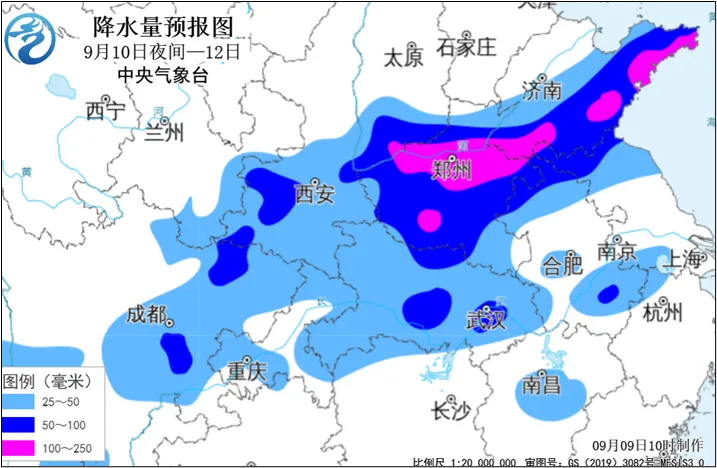 预计9月10日夜间至12日,四川东部、陕西中南部、山西南部、湖北、河南、山东中南部等地有大到暴雨,其中,山西南部、河南中北部、山东南部等地的部分地区有大暴雨;上述地区累积降雨量30~60毫米,山西南部、河南、山东南部等部分地区100~120毫米,局地140~180毫米;部分地区伴有短时强降水(最大小时雨量有20~30毫米,局地可达40~60毫米),局地有雷暴大风等强对流天气。