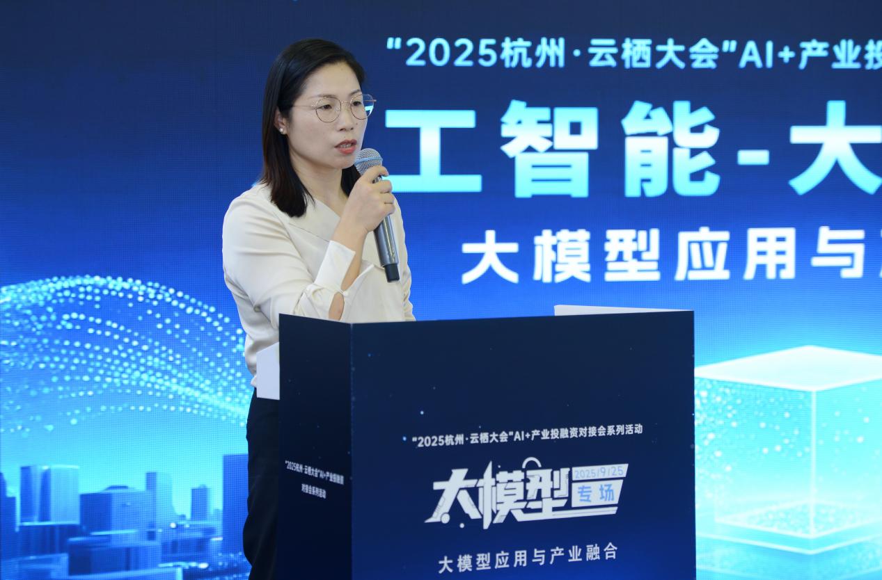 西湖区商务局党委副书记、副局长李胜英在致辞中表示,作为数字经济第一区,西湖区入选全省人工智能产业集群核心区,大模型开发应用优势突出。截至2024年,全区规上人工智能核心企业近100家,占全省五分之一、全市四分之一,形成以云计算、大数据、区块链等为核心的产业集群。在大模型开发训练及推广应用方面,西湖区走在全省前列,7个大模型通过中央网信办备案,在“AI+制造”“AI+医疗”“AI+航天”等领域多点开花,构建起繁荣多元的人工智能产业生态。西湖区诚挚欢迎更多大模型领域的专家、团队和企业来到西湖区,共同打造具有全国影响力的大模型创新高地与产业集聚区。