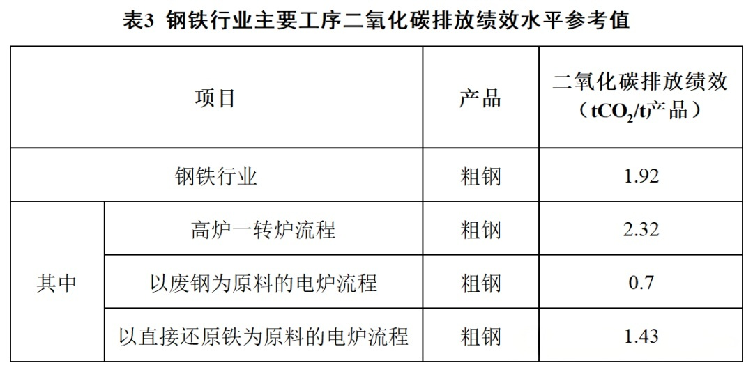 2022年,山东省生态环境厅印发《山东省钢铁行业建设项目温室气体排放环境影响评价技术指南(试行)》(鲁环发〔2022〕4号),规定了钢铁行业各主要工序二氧化碳排放绩效水平参考值,具体可见表4。