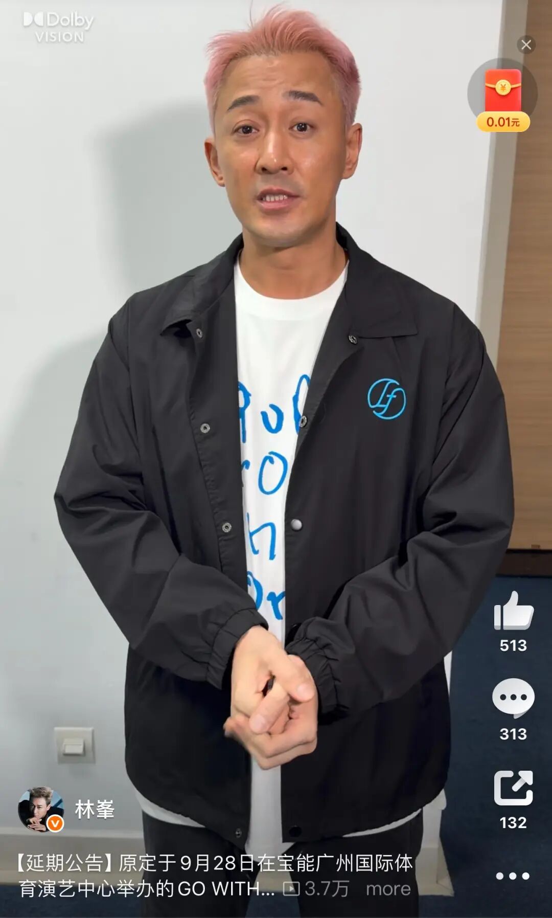 随后,林峯亦录制视频表示:“刚才正在化妆的时候收到突发消息,由于场地线路出现了一些突发状况,非常抱歉今晚的演出未能如期进行,演唱会后续安排容后公布。”