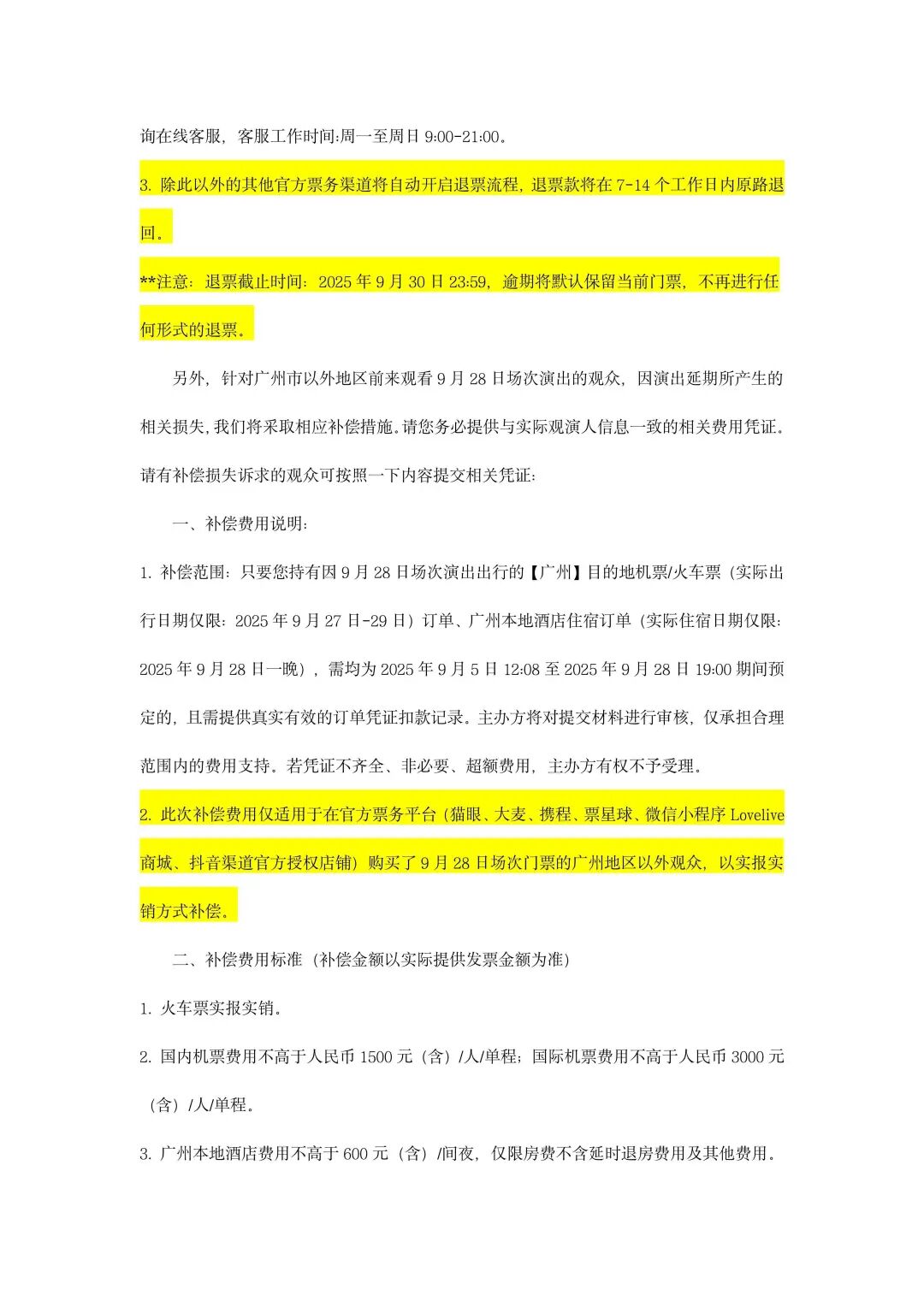 另外,针对广州市以外地区前来观看该场次演出的观众,因演出延期所产生的相关损失,主办方将采取相应补偿措施。