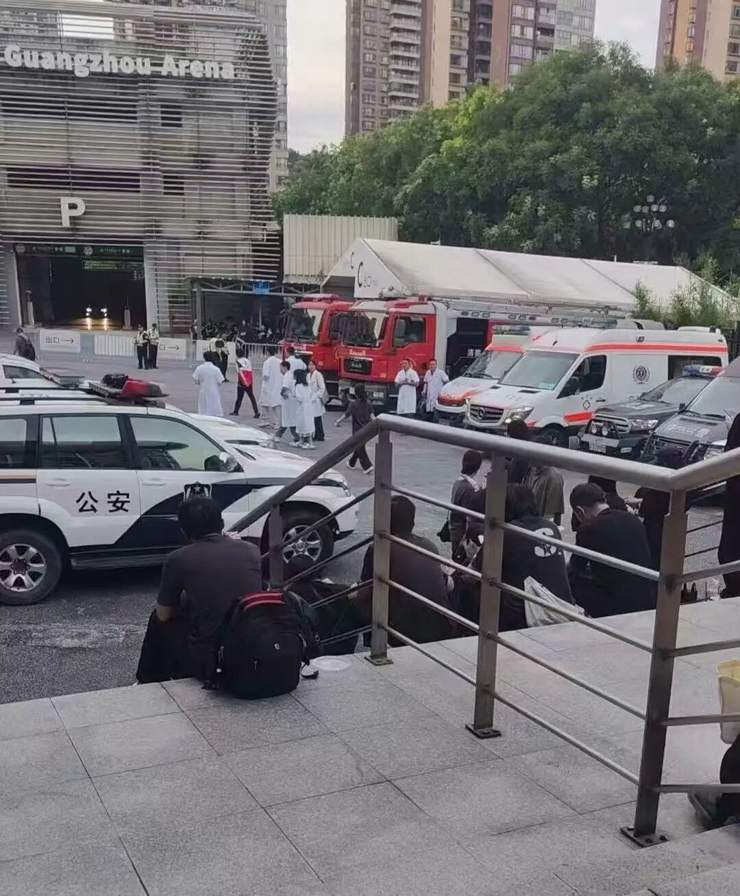 有网友发帖称,场馆附近疑似发生火情。有已到达场馆的观众拍到场馆外停放了多辆消防车、救护车。也有多名观众表示,在场馆外能闻到烧焦味。