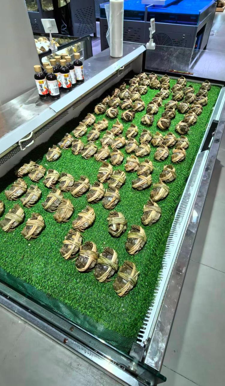 在盒马鲜生,记者了解到,大闸蟹产区主要有江苏和大通湖。今年是大闸蟹的丰年,产量相比2024年显著提升,到目前为止,大闸蟹已完成(4)次到(5)次脱壳。预计在中秋节前,母蟹(3两)等以上重量的大规格蟹将批量集中上市。