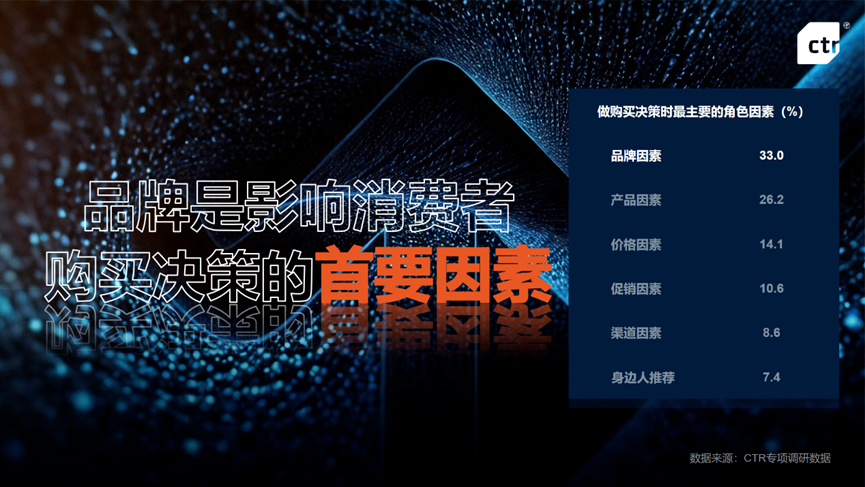CTR调研结果指出,品牌是影响消费者购买决策的第一要素,占比达33%,显著高于产品、价格、促销等其它指标。在消费者认知驱动下,越来越多广告主意识到品牌能够构建与消费者心智的稳固连接,奠定关键的品牌信任基石。《报告》指出,这种信任不仅能有效抵御市场波动与不确定性,更能为内容种草和销售转化带来事半功倍的成效。