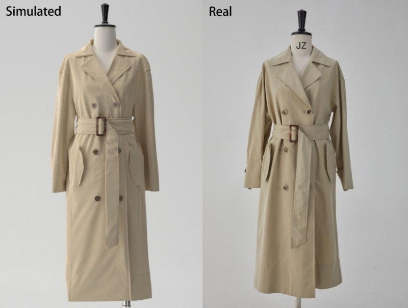 虚拟风衣和真实风衣对比。多年来,Style3D一直在推进更高效逼真的变形体模拟