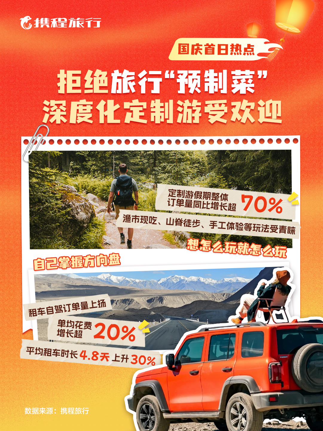 “我更愿意逛逛本地市场、学做地道菜,或是跟着手艺人体验非遗。”即将开启云南定制行程的游客李先生对上海证券报记者表示,网红景点、餐厅甚至拍照姿势都像“复制粘贴”的“预制菜”式旅行,太过雷同,而深度游则能让他感受到与目的地之间更真切的文化连接。携程数据也印证了这一点,截至目前,国庆期间定制游销量同比增长超40%。
