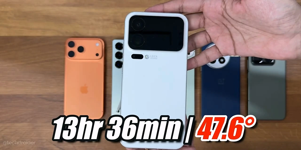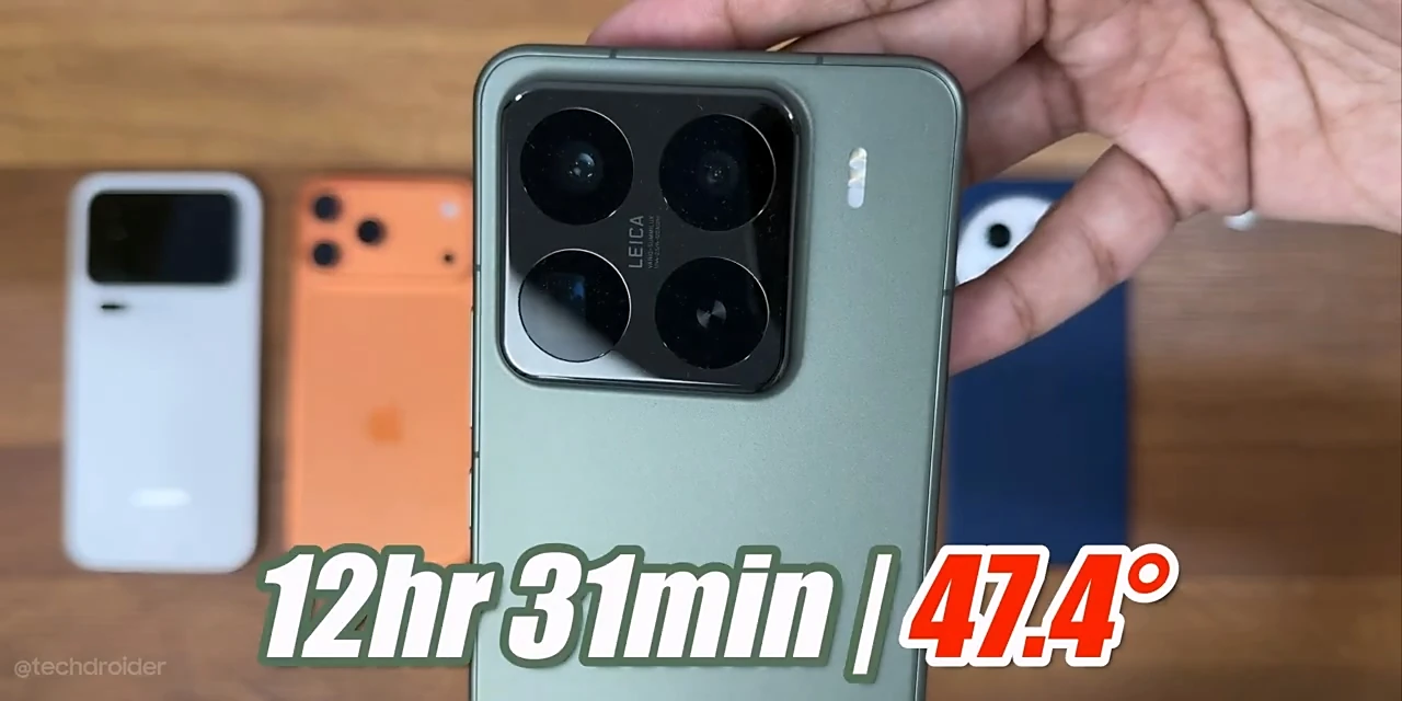 TechDroider 的极限续航测试模拟了高强度使用场景,包括 3 小时游戏、3 小时视频播放、1.5 小时网页浏览、1.5 小时社交媒体使用,以及持续拍摄 4K 视频直至电量耗尽。