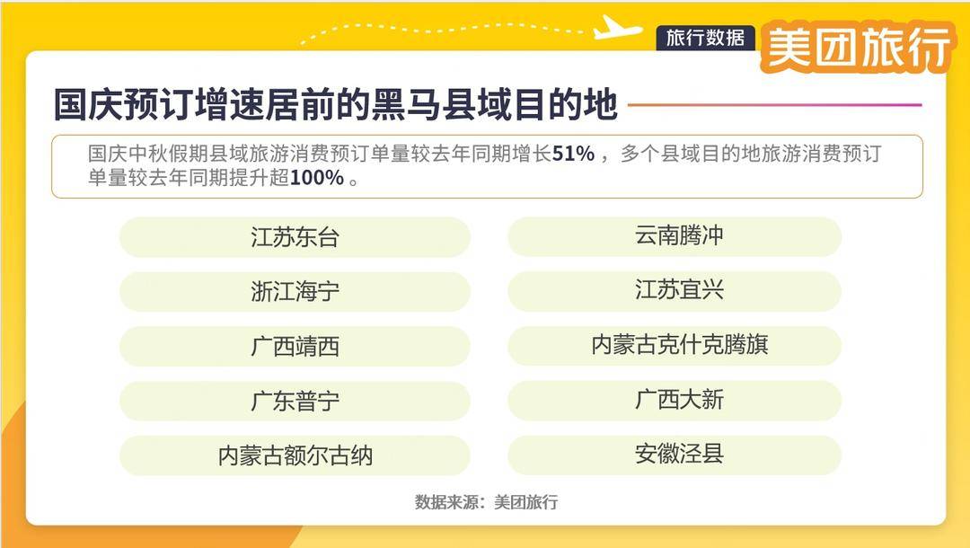 ▲国庆中秋假期大城市周边县域目的地预订单量较去年同期增长51%