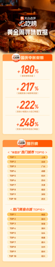 大众点评发布假期寻味数据:美食小城“必吃榜”流量涨超217%