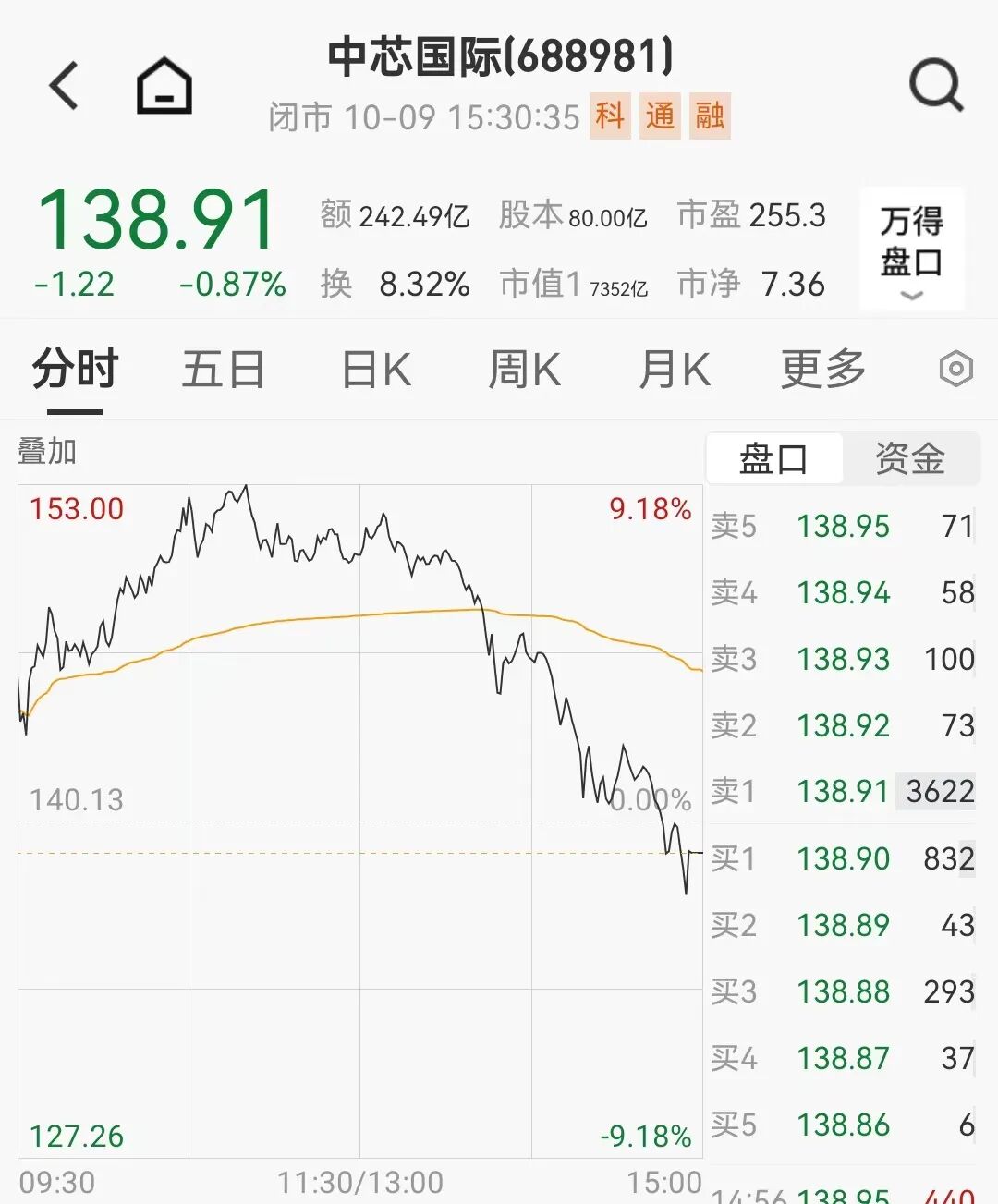 半导体板块为何突然跳水?市场传闻称,近日交易所要求,静态市盈率在300倍以上或者为负数的A股股票,折算率为0%。此外,有投资者表示,今日收到东方财富(300059)证券短信通知,自10月9日起,信用账户持有的中芯国际(688981)的折算率由0.70调整为0.00,佰维存储(688525)的折算率由0.50调整为0.00。