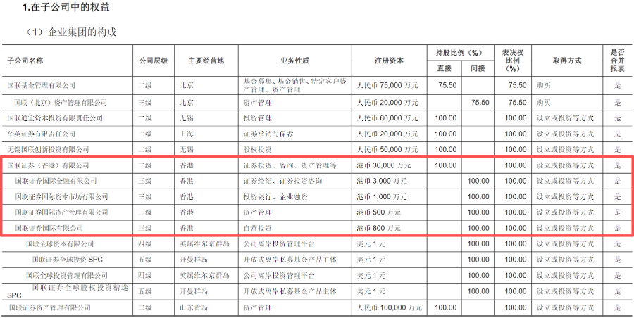 值得注意的是,21世纪经济报道记者查询发现,国联民生证券还有2家香港子公司获批香港证监会牌照,分别为国联证券国际资本市场有限公司,国联证券国际资产管理有限公司,均为国联证券(香港)有限公司旗下全资子公司,分别主营企业融资、资产管理业务。