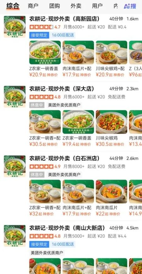 湘菜品牌农耕记则是开了专门的外卖店,并且与堂食门店有所区分。