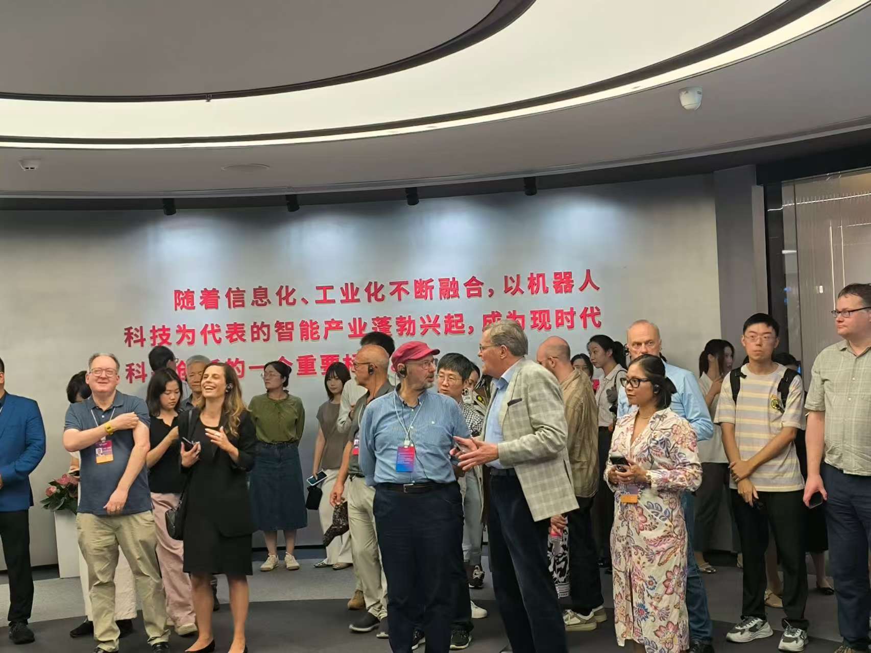 当天下午,参访团首站来到张江“国家地方共建人形机器人创新中心”。走进创新中心展厅,多款形态各异、功能多样的人形机器人映入眼帘,有的正灵活完成抓取、搬运等精细动作,有的在模拟场景中开展协同作业,机械臂运转的精准声响与屏幕上实时跳动的数据,共同勾勒出智能科技的生动图景。专家们驻足观看,不时与工作人员交流技术细节,主动询问机器人的未来发展方向,现场氛围热烈。