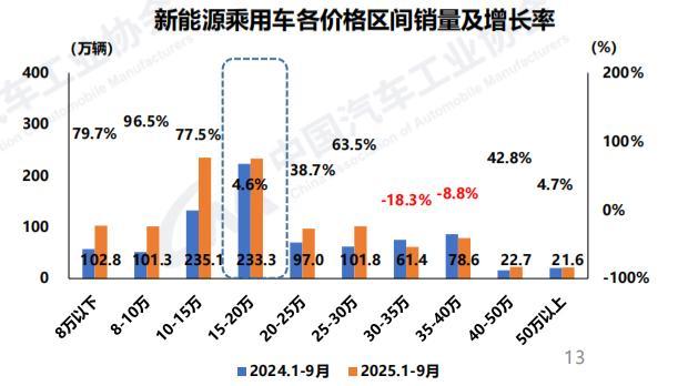 前9个月新能源乘用车主流价格区间高于燃油乘用车