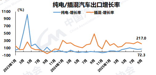 值得注意的是,虽然插混汽车整体增速放缓,但其在出口方面表现亮眼。中汽协数据显示,1至9月,我国纯电动汽车出口113万辆,同比增长54.6%;插混汽车出口62.8万辆,同比增长2.2倍。其中,9月,我国纯电动汽车出口15.3万辆,环比增长6.6%,同比增长72.3%;插混汽车出口6.9万辆,环比下降14.3%,同比增长2.2倍。