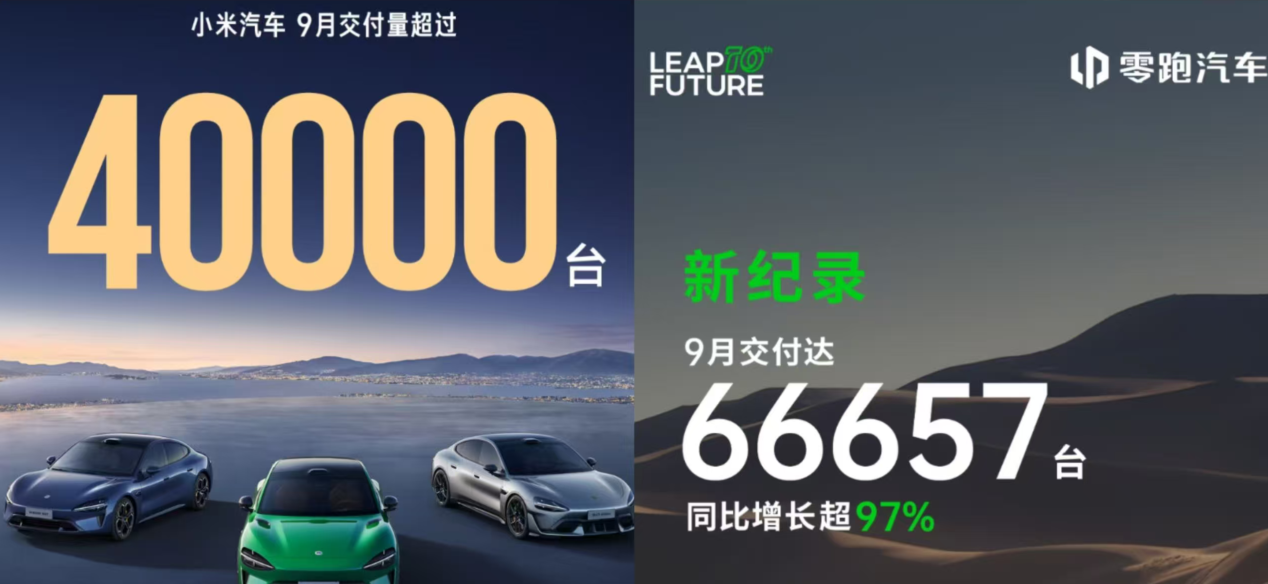 同时,造车新势力第二梯队的竞争尤为激烈。小鹏汽车、小米汽车两家企业同时突破月销4万辆大关,在均创历史新高的同时,也形成了新势力阵营的“4万辆俱乐部”。值得一提的是,截至9月底,这两家企业今年的年销目标达成率都超过了70%。