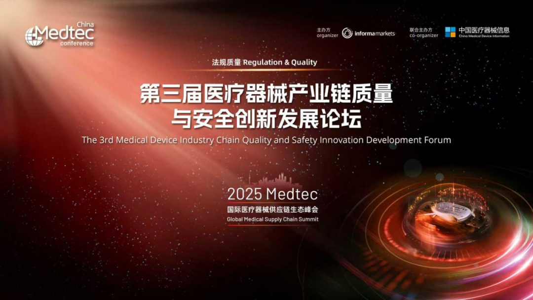 在中国医疗器械行业协会的指导下,由《中国医疗器械信息》杂志社联合Medtec China共同主办的“第三届医疗器械产业链质量与安全创新发展论坛”于2025年9月25日在上海世博展览馆成功举办。