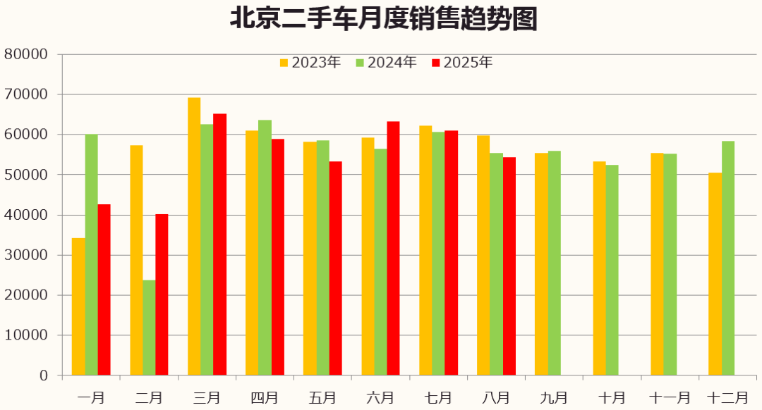 1—8月北京累计交易新车42.17万辆,同比去年43.89万辆下降3.93%,增幅低于全国16.53个百分点。